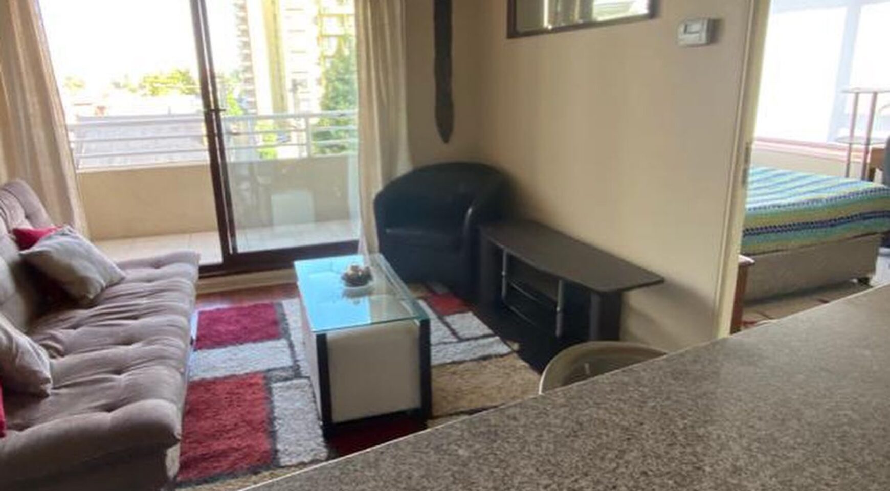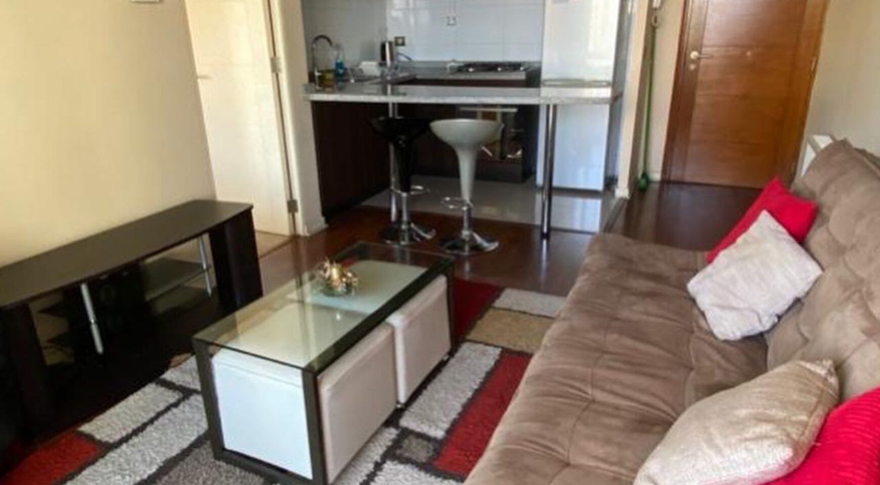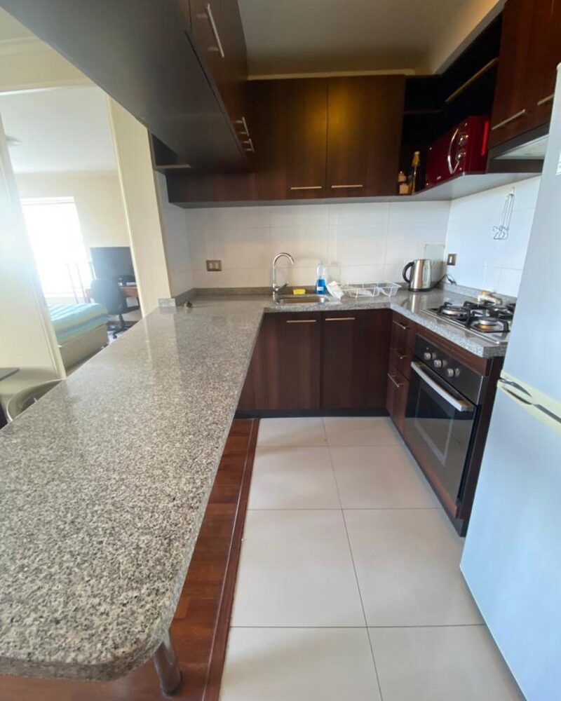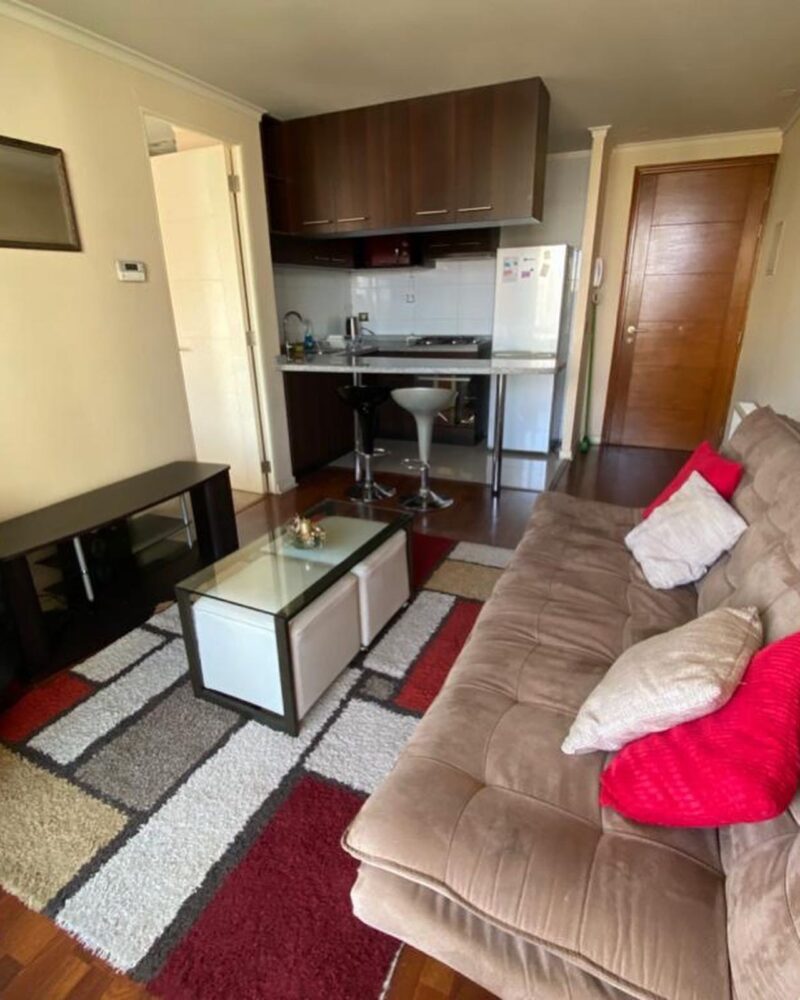 Dpto incluye: cama 2 plazas, ropa de cama televisor, refrigerador, microondas, menaje de cocina, Futon cortinas, lámparas