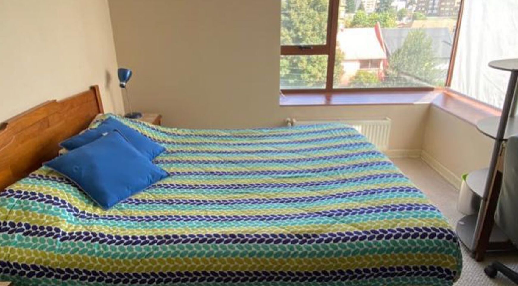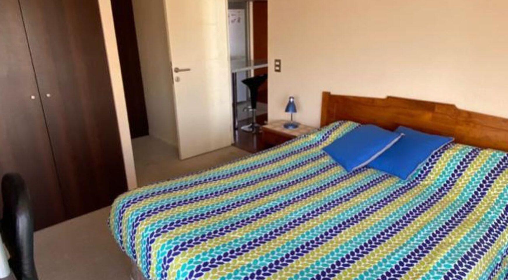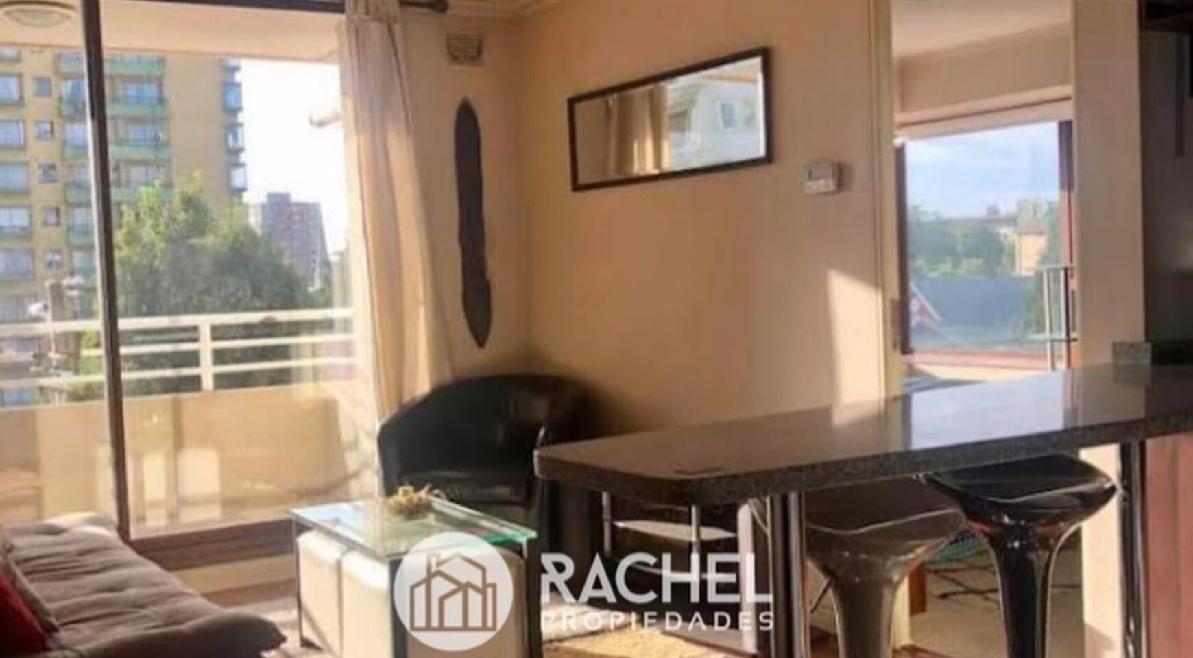 Dpto incluye: cama 2 plazas, ropa de cama televisor, refrigerador, microondas, menaje de cocina, Futon cortinas, lámparas
