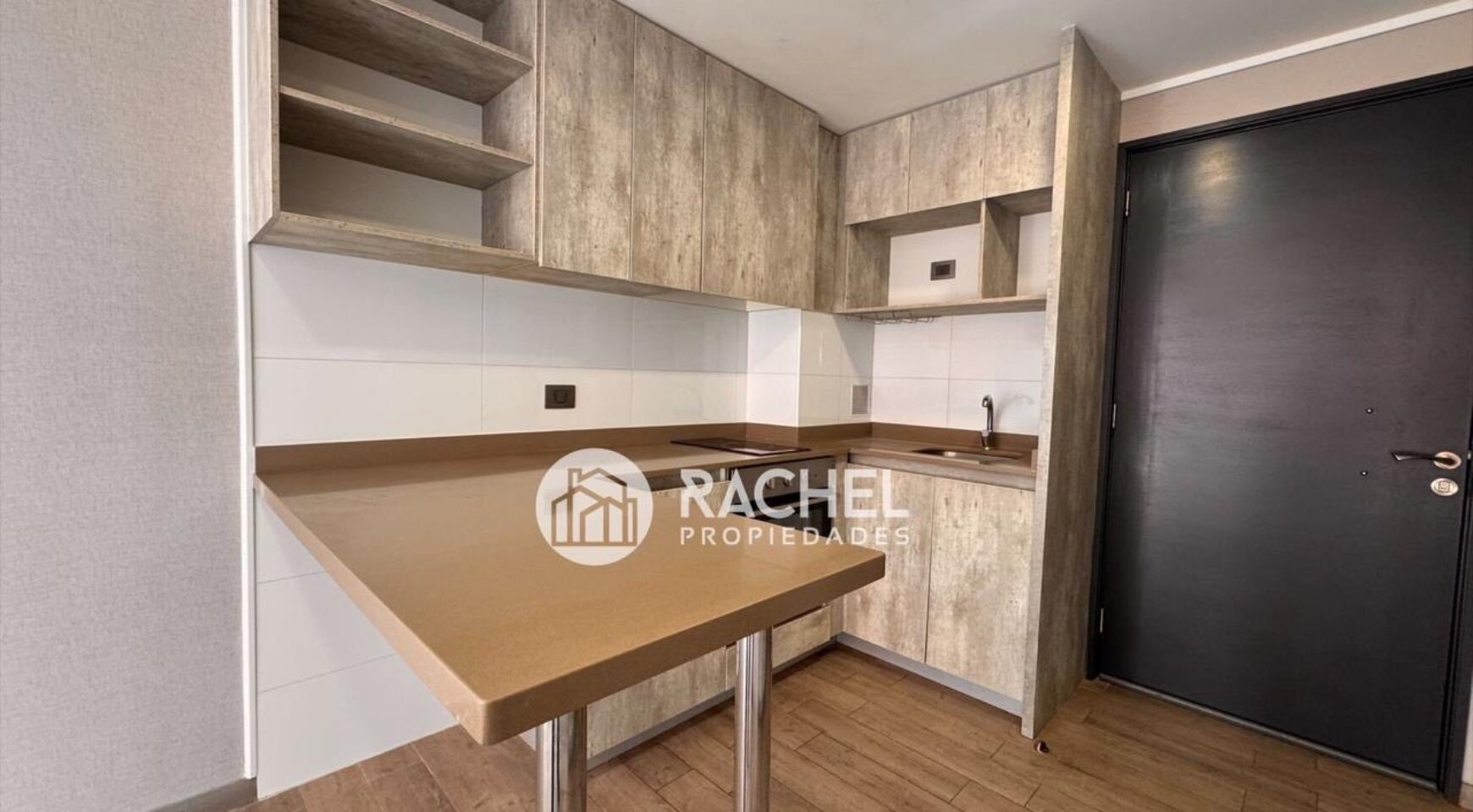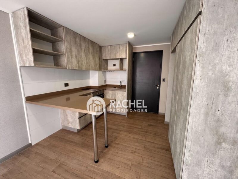 Cocina amoblada y equipada, incorporada a living con salida a balcón