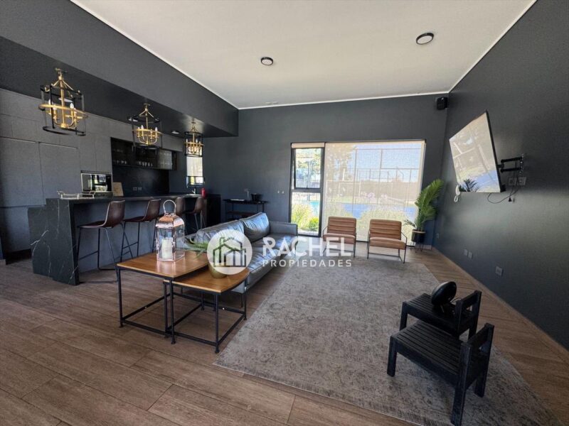 El Condominio cuenta con hermosas y completas áreas comunes, Piscina, gimnasio, cancha de pádel, zona de juego para niños, espacio para mascotas, estacionamiento de visitas, Jardines, conserjería 24/7.