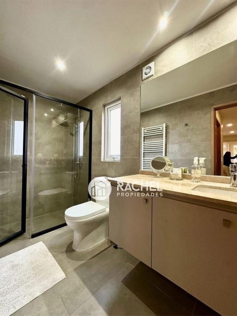 Dormitorio principal en suite con salida a jardín incluye con walking clóset, baño con finas terminaciones porcelanato, amplia ducha en obra con columna ventanal vidrio templado