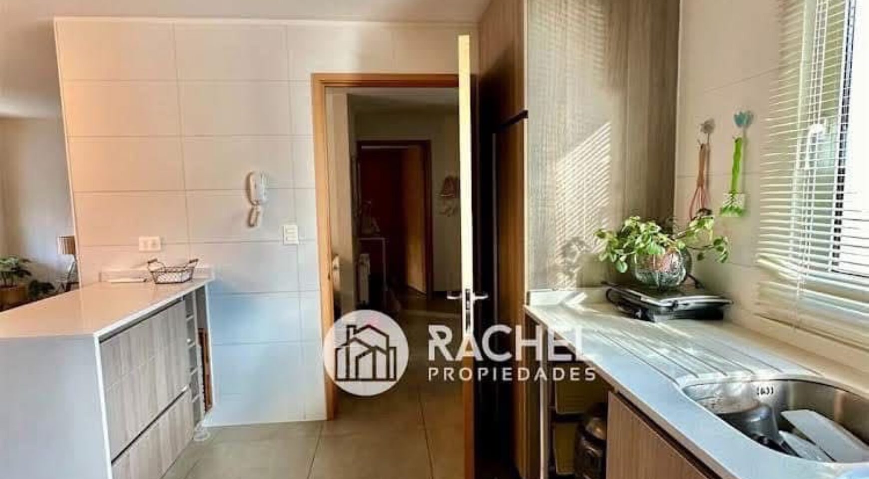 cocina de muy buen tamaño con amplios muebles, encimera a gas 4 platos horno y campana eléctricos, espacio para refrigerador side by side, loggia separada con instalación para lavadora y secadora