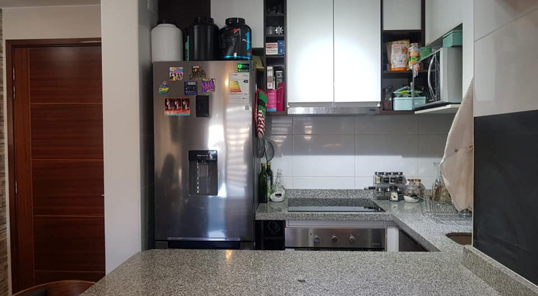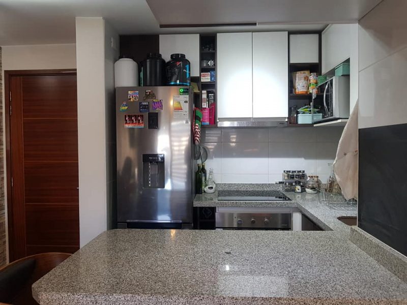 ▪cocina americana, equipada con encimera y horno electrico, cubiertas de granito