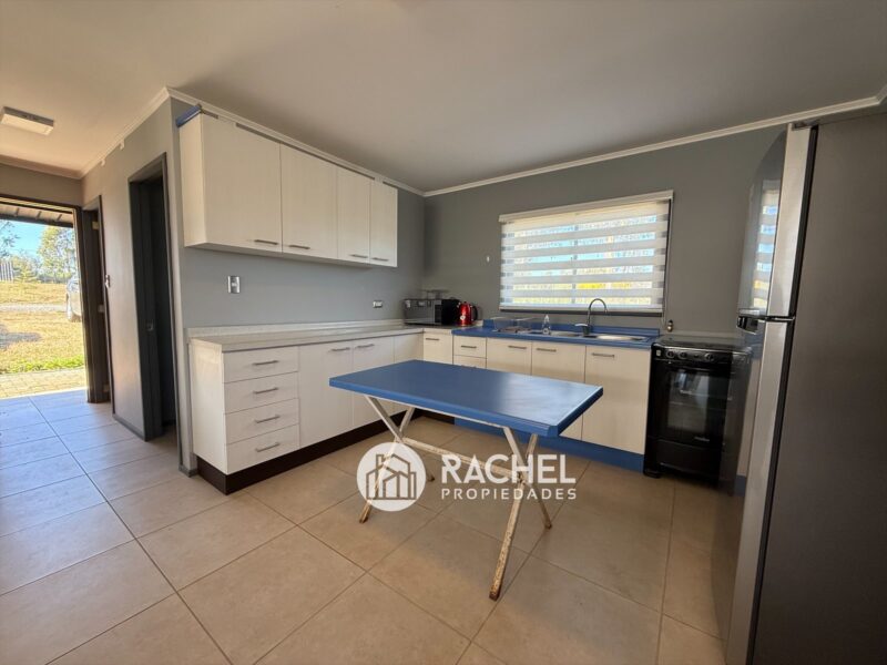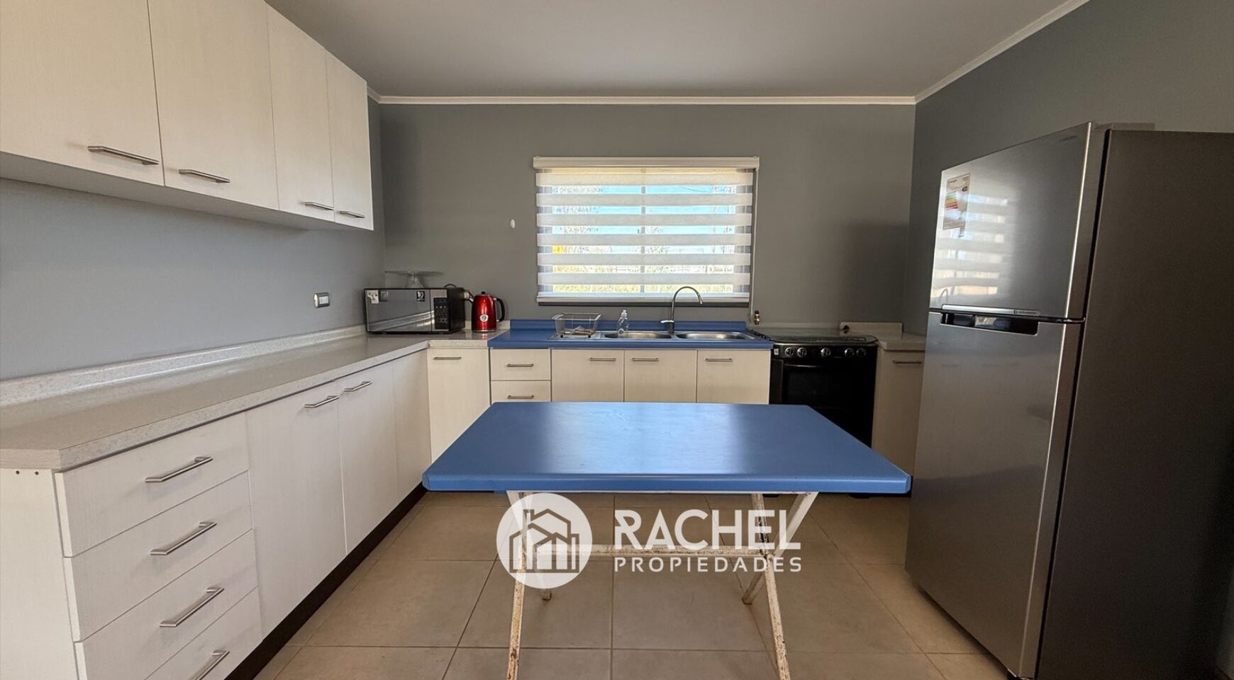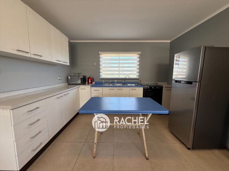 – Cocina: refrigerador, cocina 4 platos, microondas, electrodomésticos, loza, menaje cocina