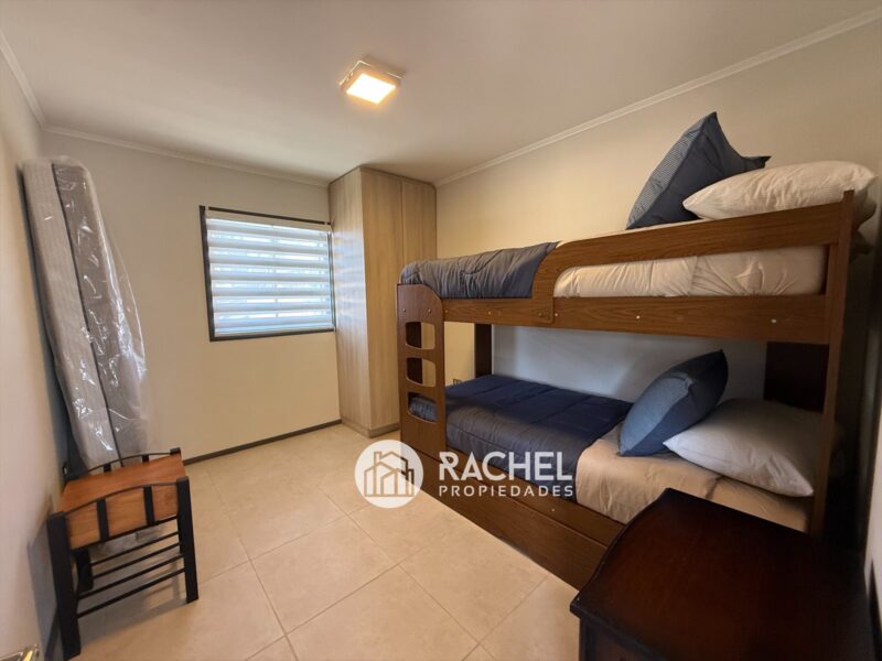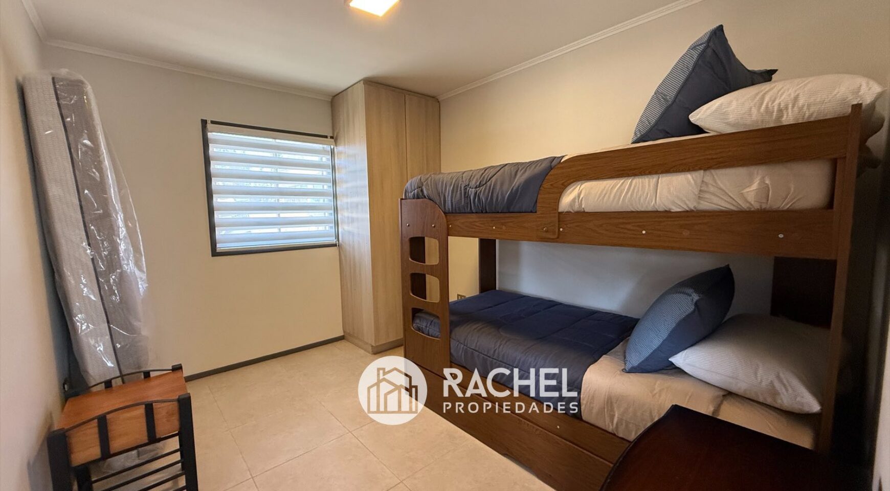 – Segundo dormitorio: litera, clóset, ropa de cama, cortinas y lámpara