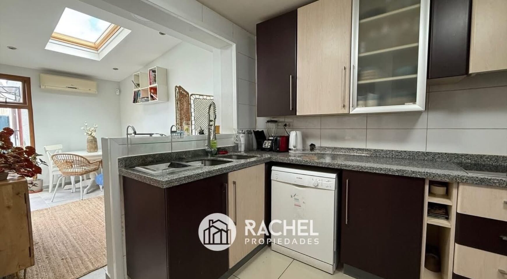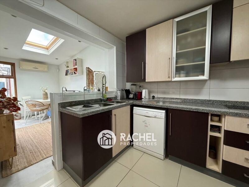 Cocina ampliada, con salita de estar y comedor de diario tipo desayunador, con salida a patio de servicio, techado con logia