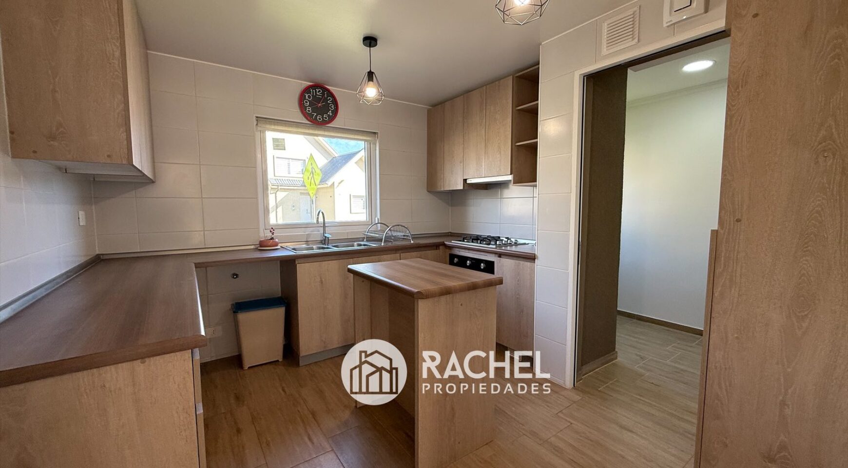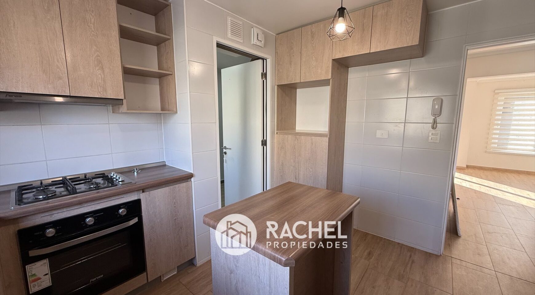 Cocina cerrada, equipada con horno, encimera, campana, isla desayunador, conexión para lavavajillas