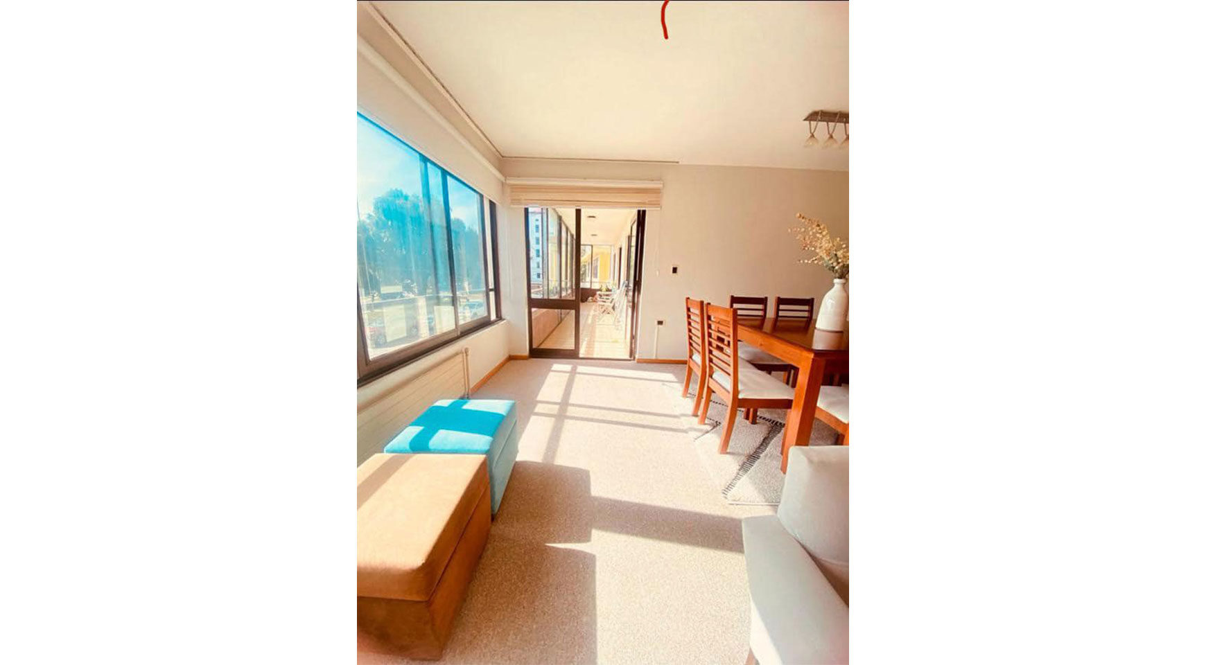 living comedor con salida a terraza techada y cerrada.