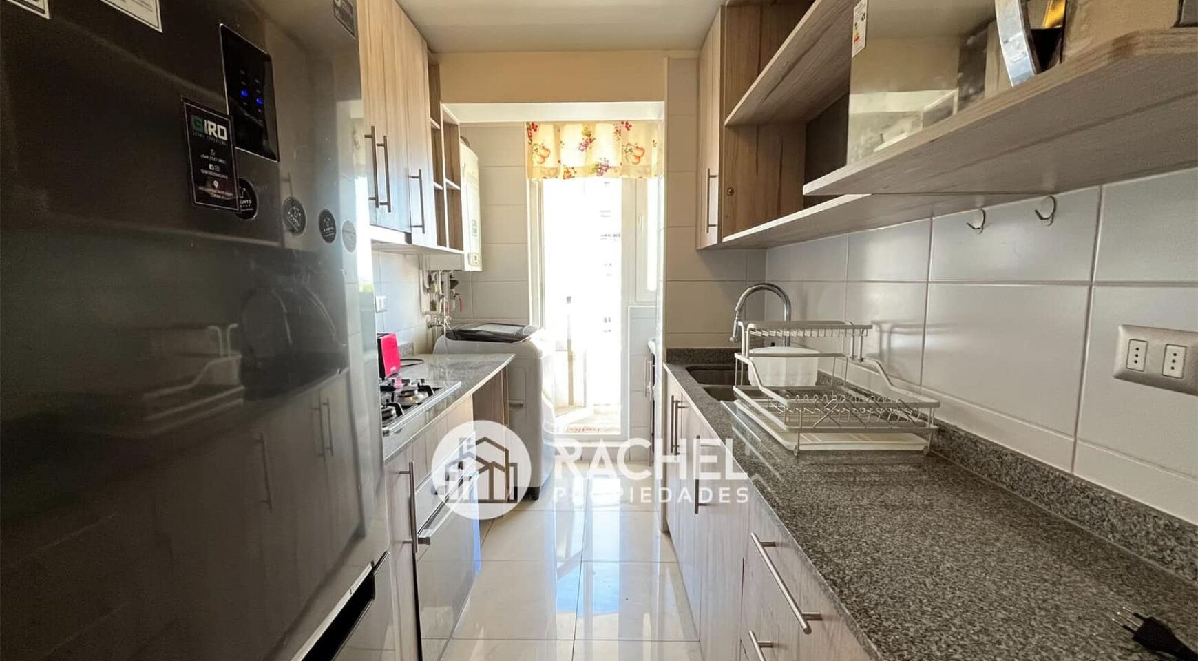 cocina cerrada, con conexión para lavadora , lavadero y salida a terraza