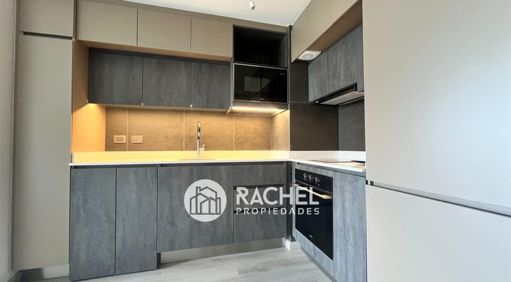 cocina integrada y equipada con refrigerador, freezer, microondas, horno eléctrico, cocina encimera y campana extractora