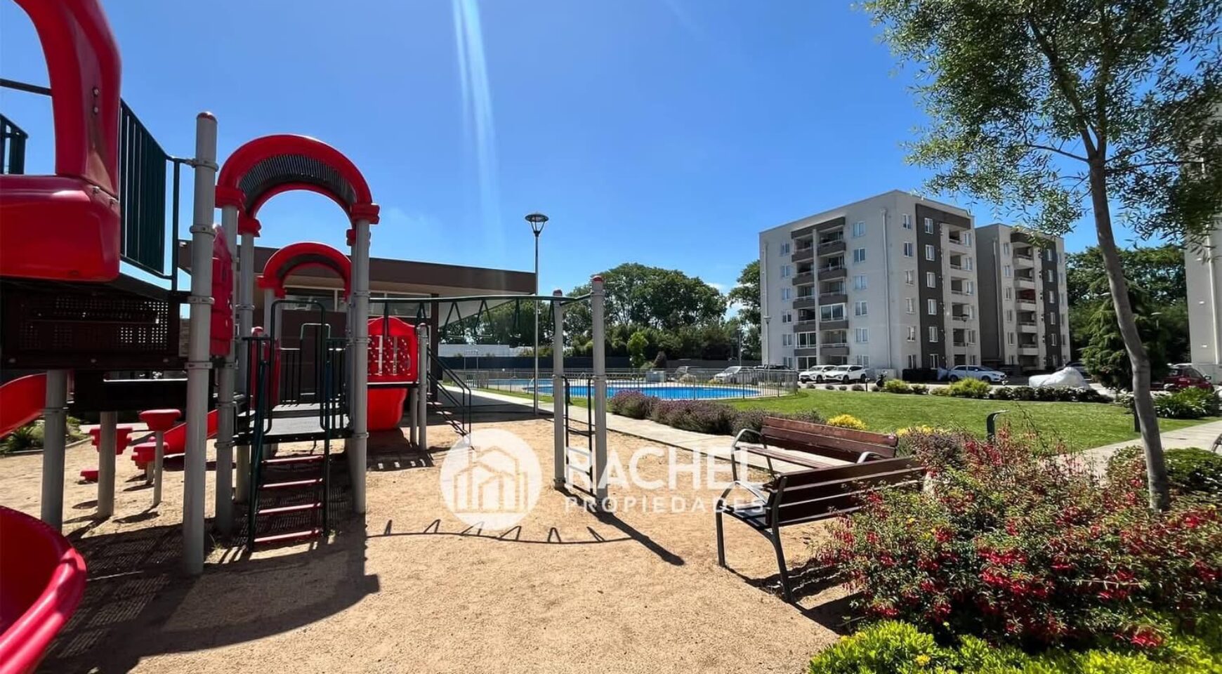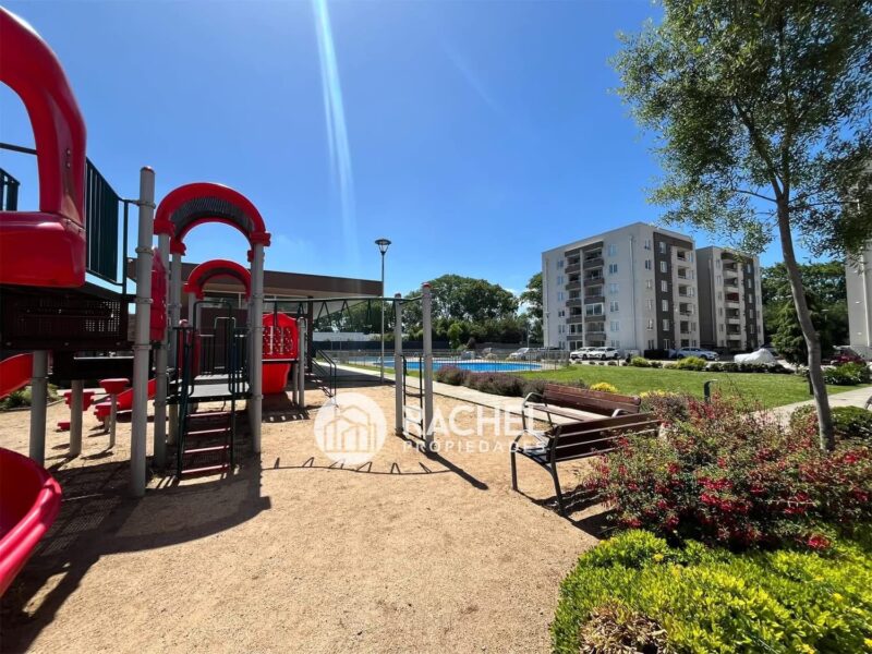 Además, el condominio cuenta con conserjería 24 hrs, quincho, piscina, zona de juegos para niños, estacionamiento de visitas y ascensor en cada torre.