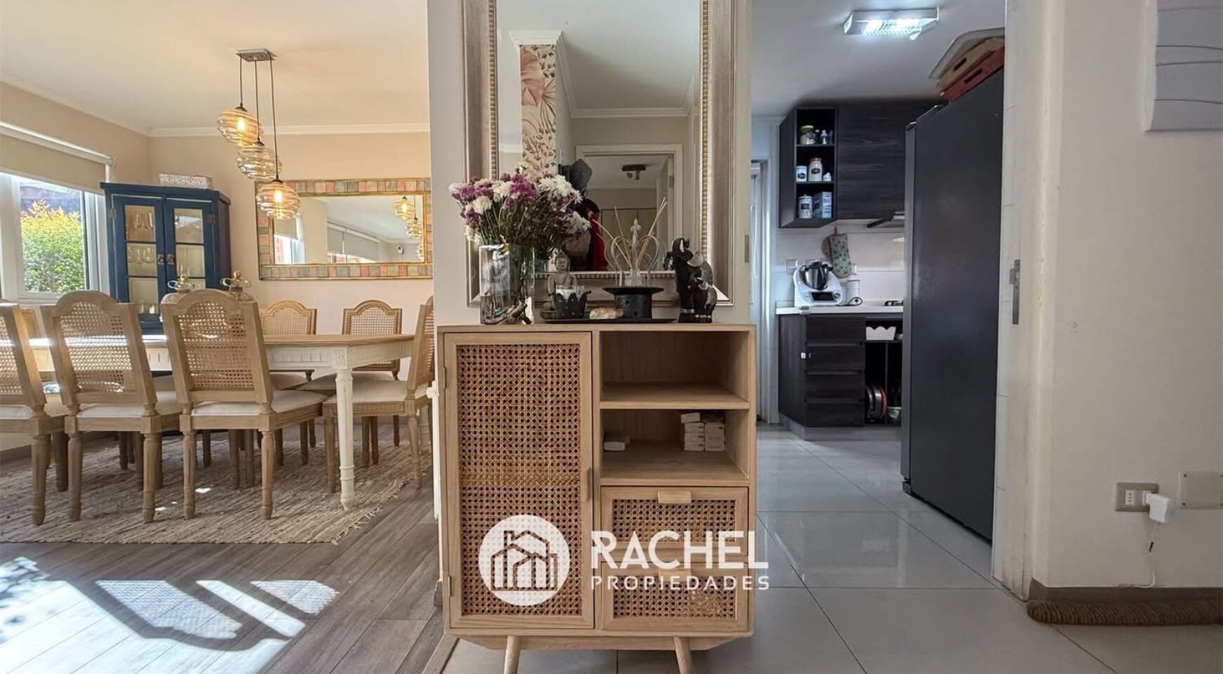 hall de acceso, baño de visitas, living comedor, cocina, dormitorio principal en suite, quincho