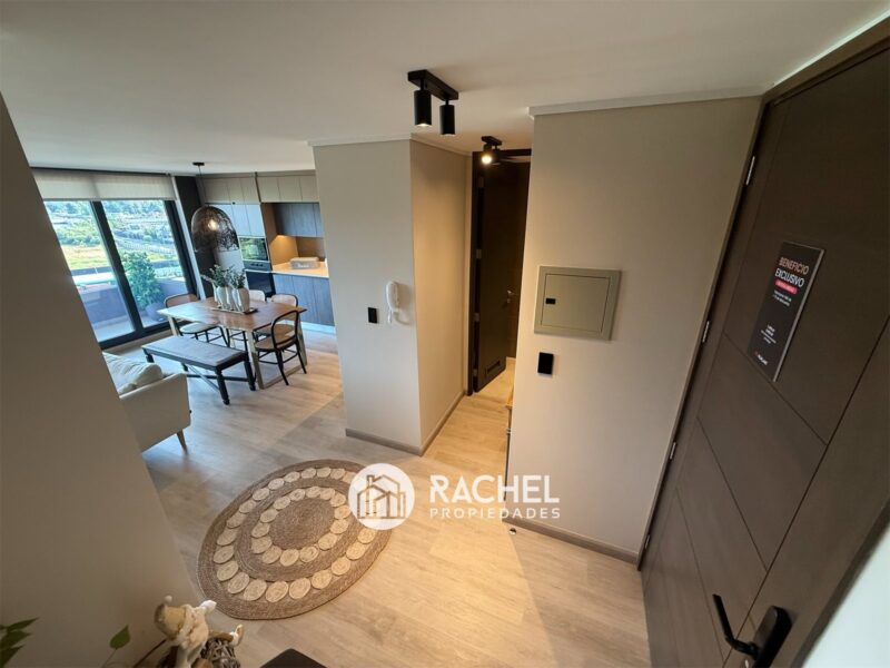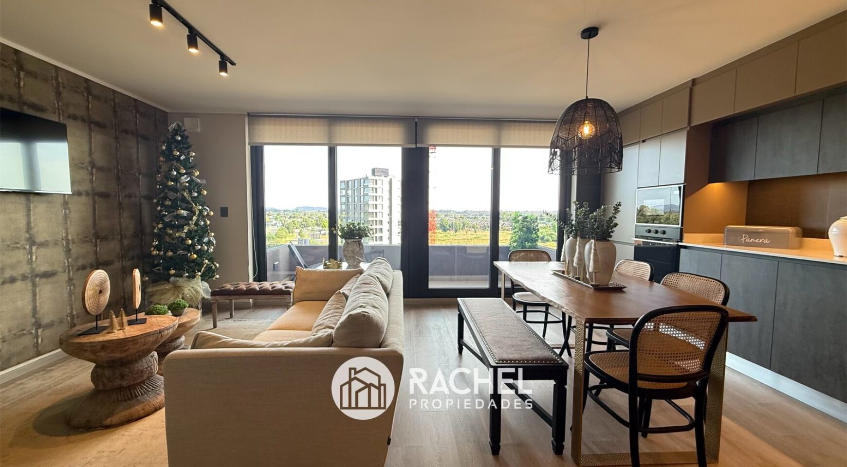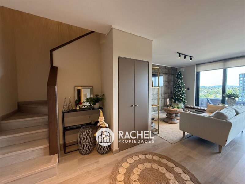 Primer piso, cuenta con Hall de acceso, baño de visitas, Living comedor, con cocina, integrada y gran terraza. En el segundo nivel se encuentran los dos dormitorios, el principal en suite con Walking clóset, un segundo baño completo, y una amplia terraza, con vista panorámica.