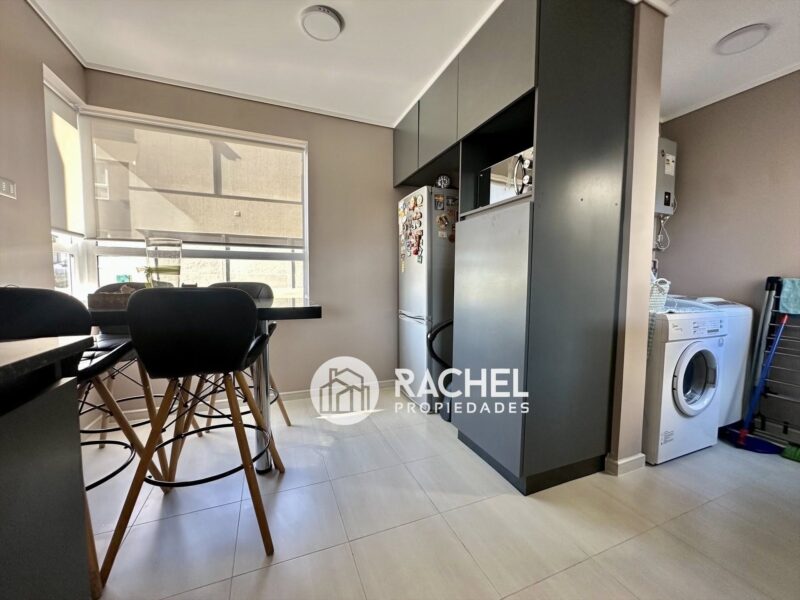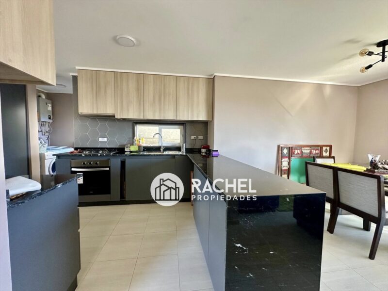 Moderna cocina de concepto abierto, integrada a amplio living comedor