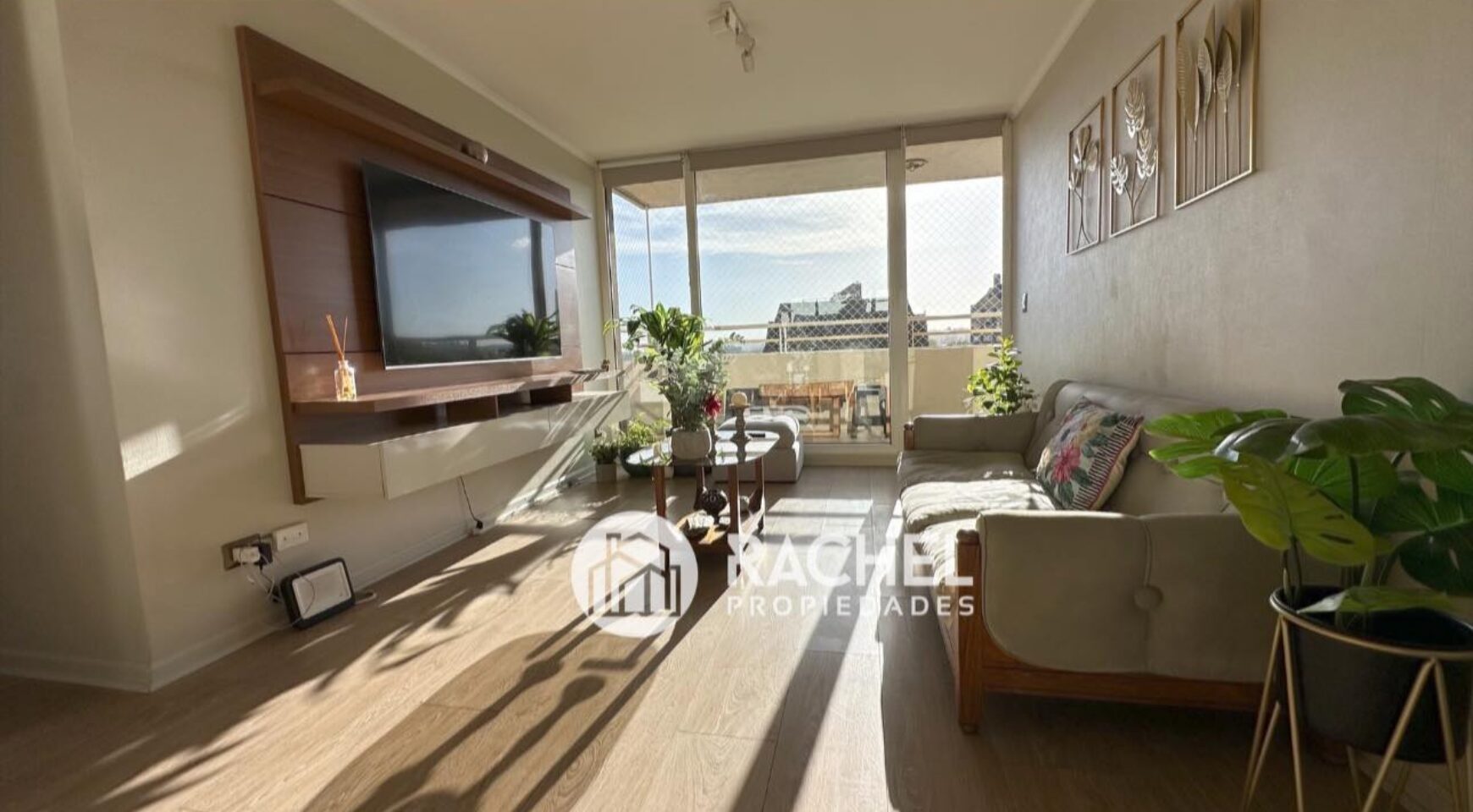 Amplio living Comedor con salida a soleada terraza. Living incluye rack empotrado.