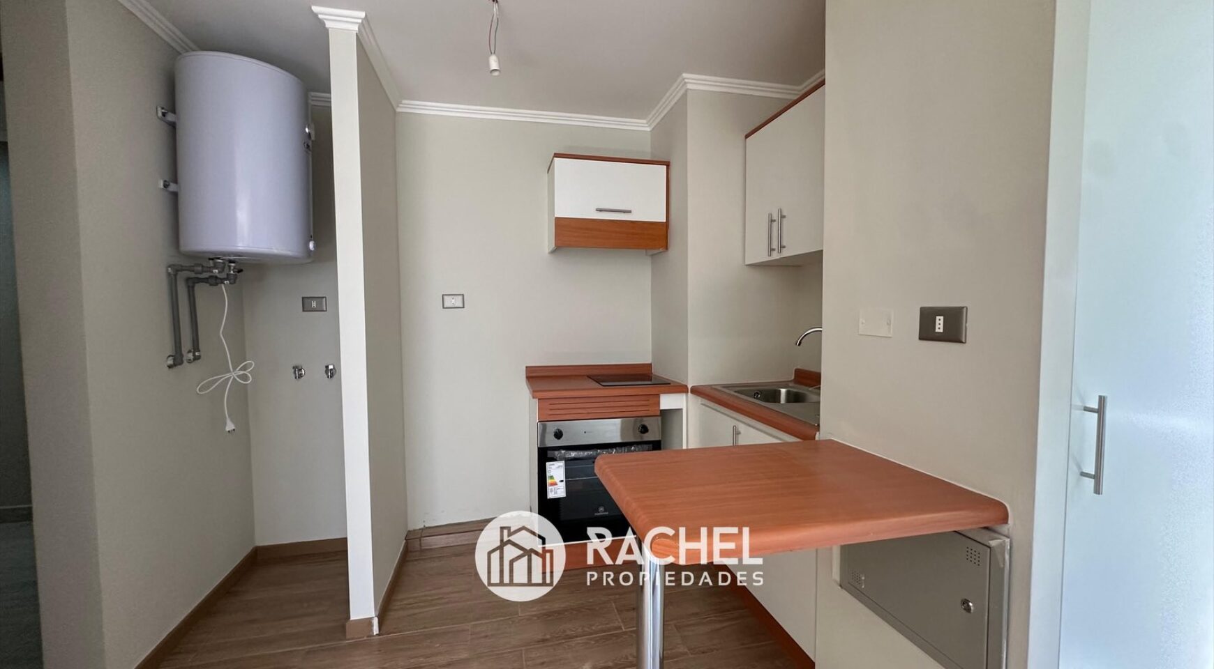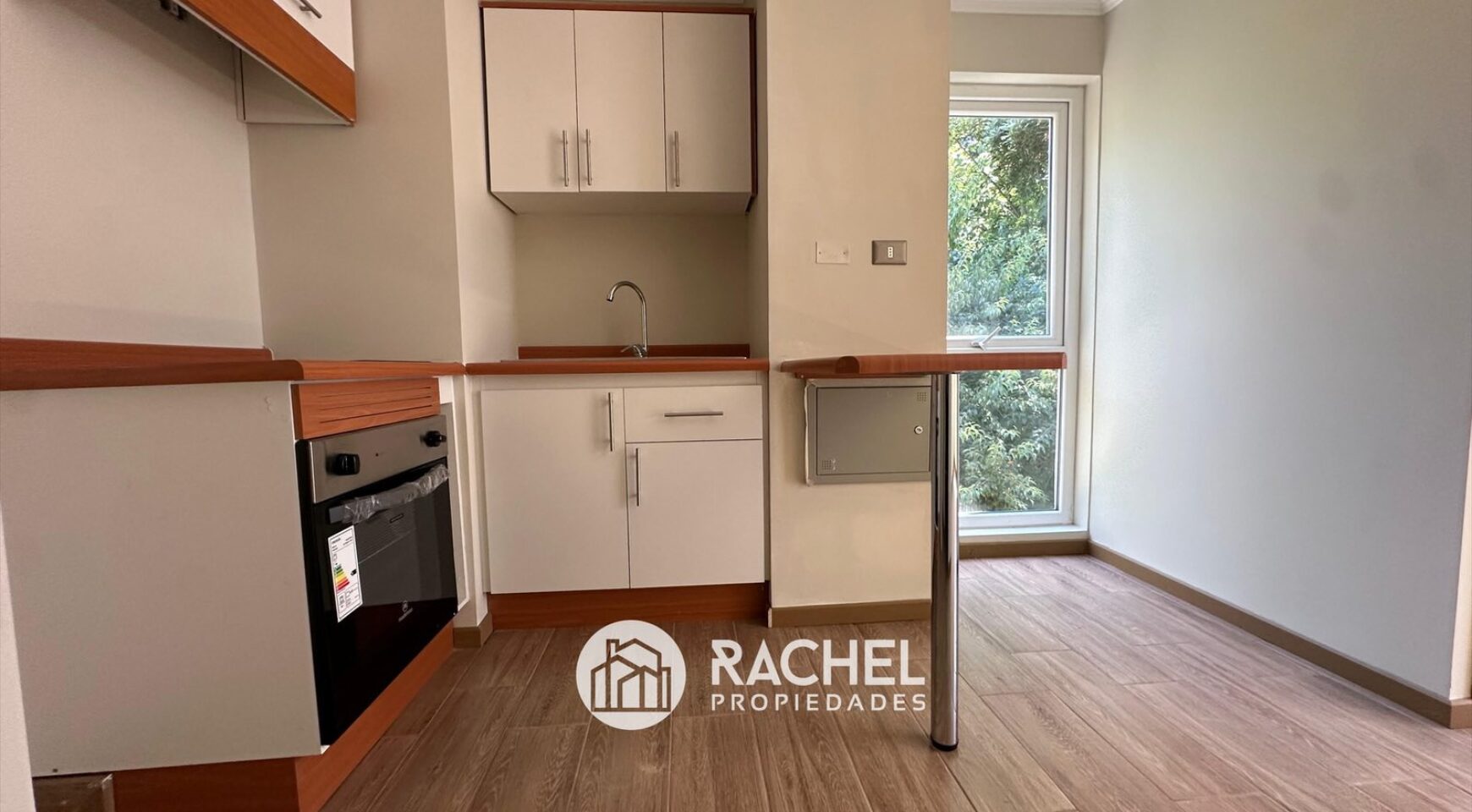 Cocina amoblada, equipada con horno y encimera, espacio para refrigerador, comedor de diario