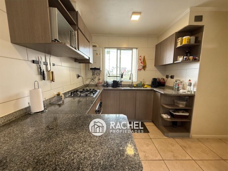 Hall de acceso, Living comedor con salida a terraza y jardín. Cocina amplia con comedor de diario, encimera, horno y campana. Cubiertas de granito. Baño de visitas, dormitorio principal en suite con walk in Closet.