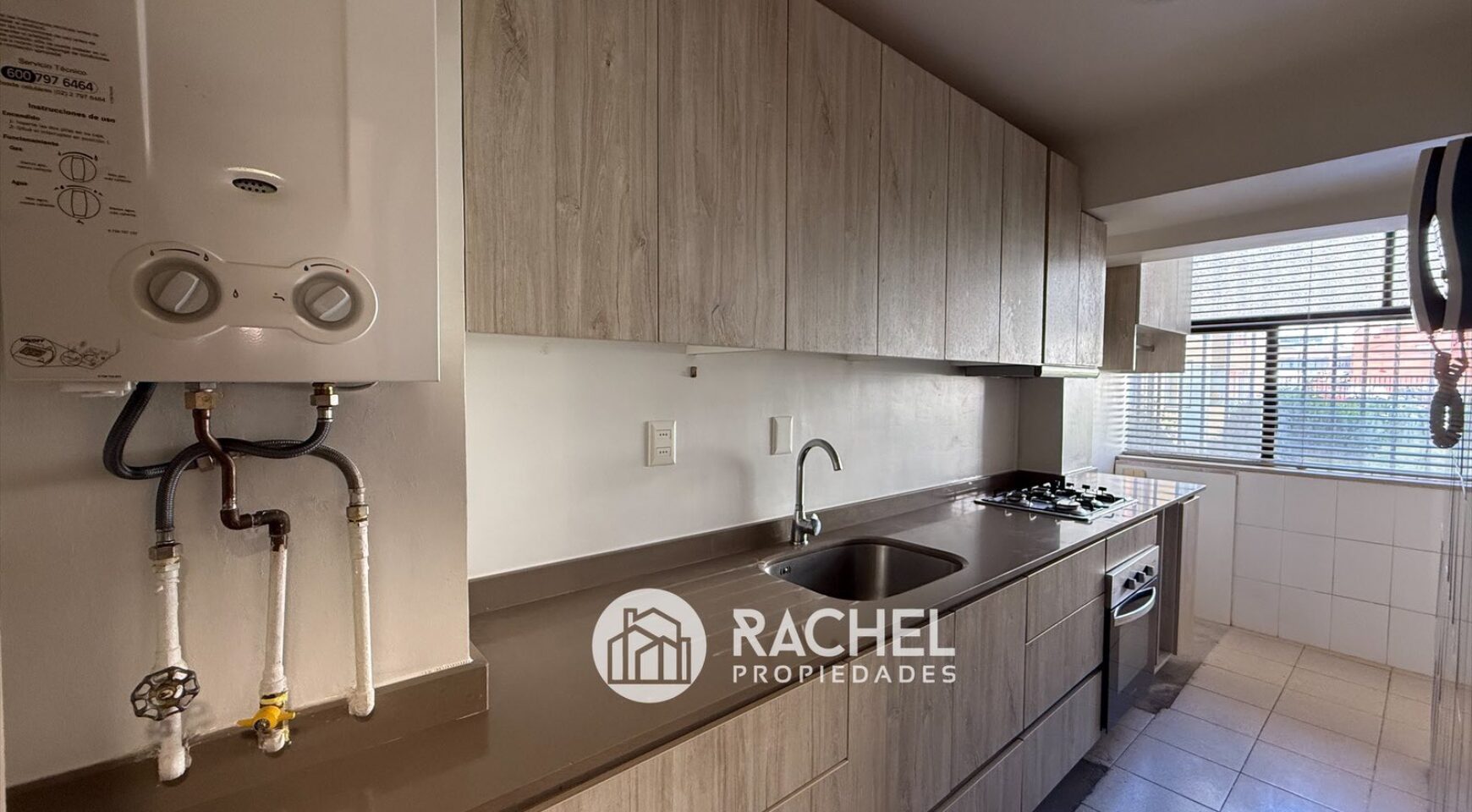 moderna y funcional cocina completamente remodelada, equipada con horno encimera, campana. Espacio para lavandería y comedor de diario.