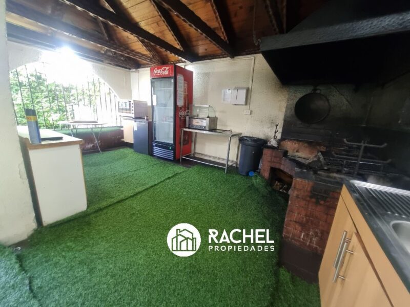 Quincho habilitado con refrigerador, mesones y mobiliario