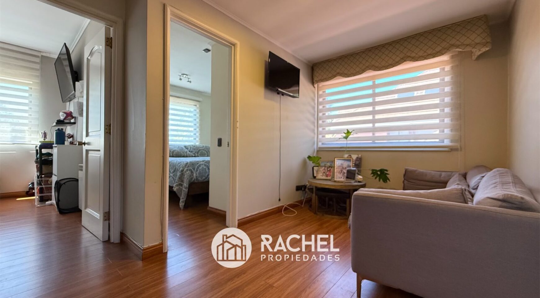 Pisos de Parquet vitrificado, cerámica y piso flotante en dormitorios y sala de estar