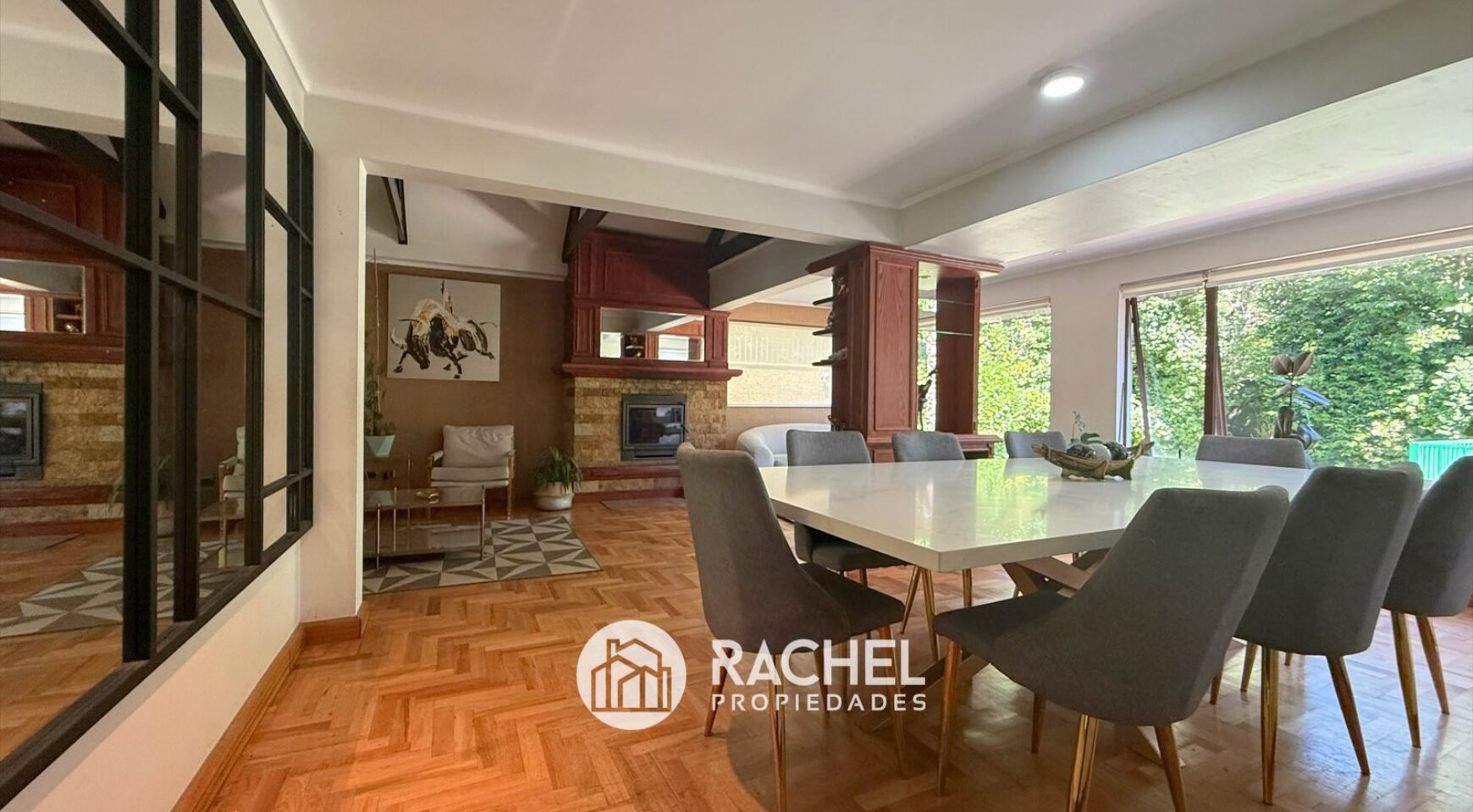 – Living comedor amplio con chimenea empotrada