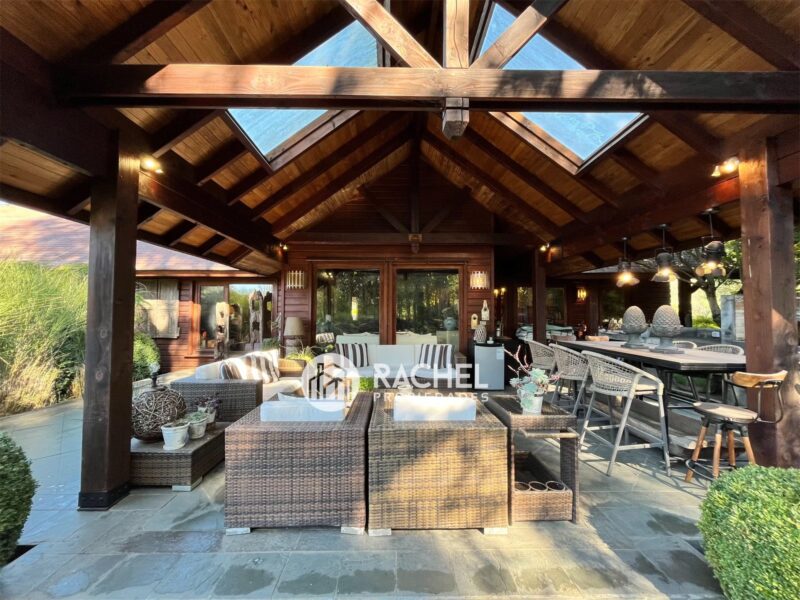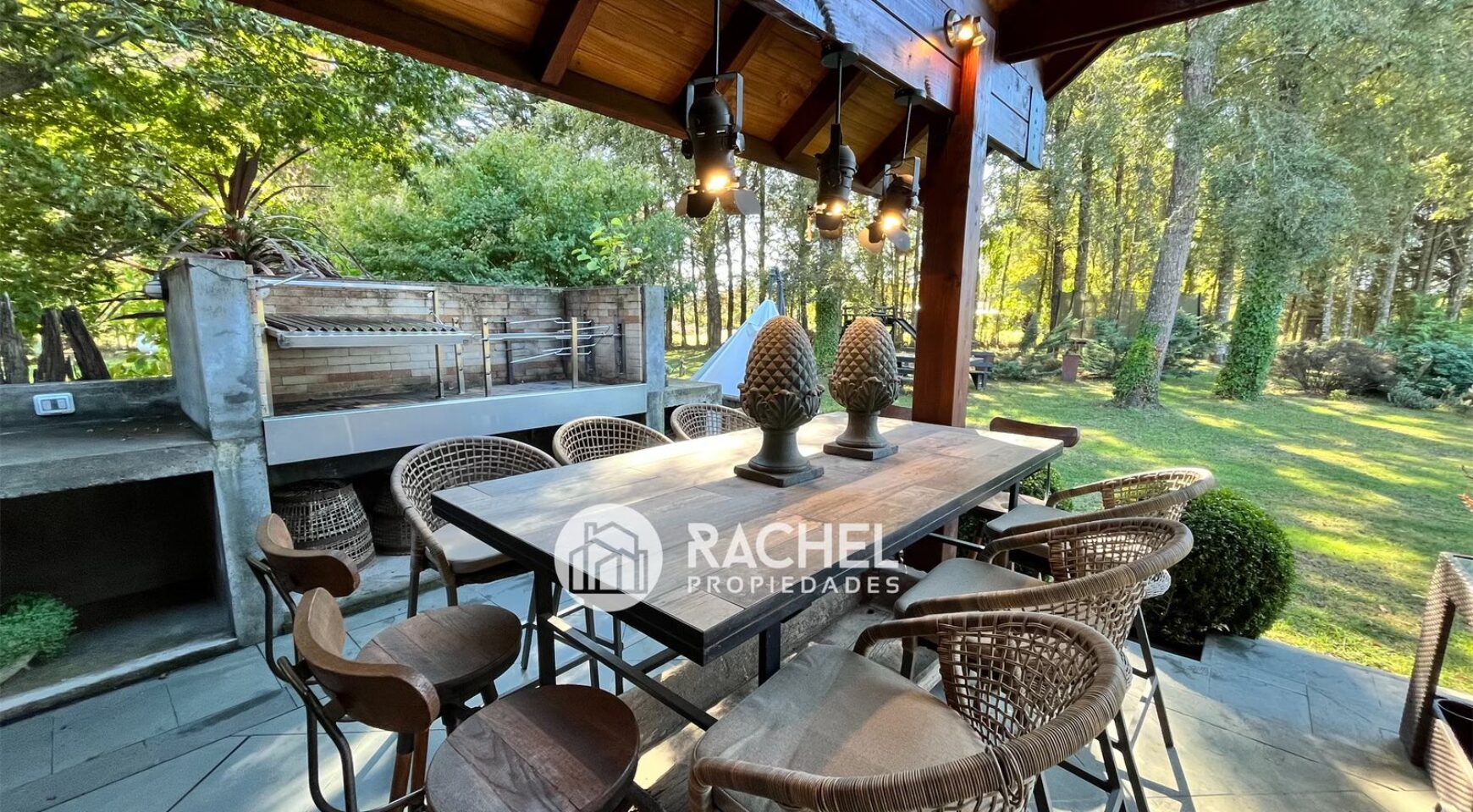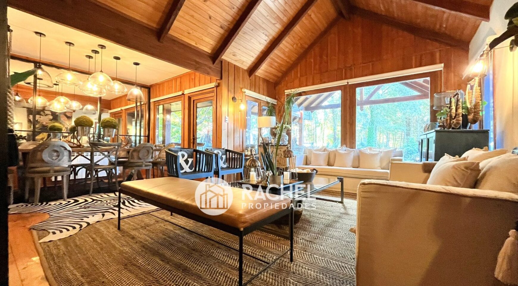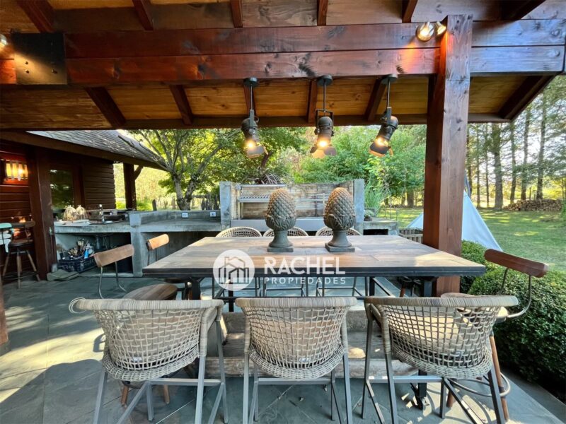 Living comedor con salida a terraza techada con sector de barbecue y hermosa vista al jardin