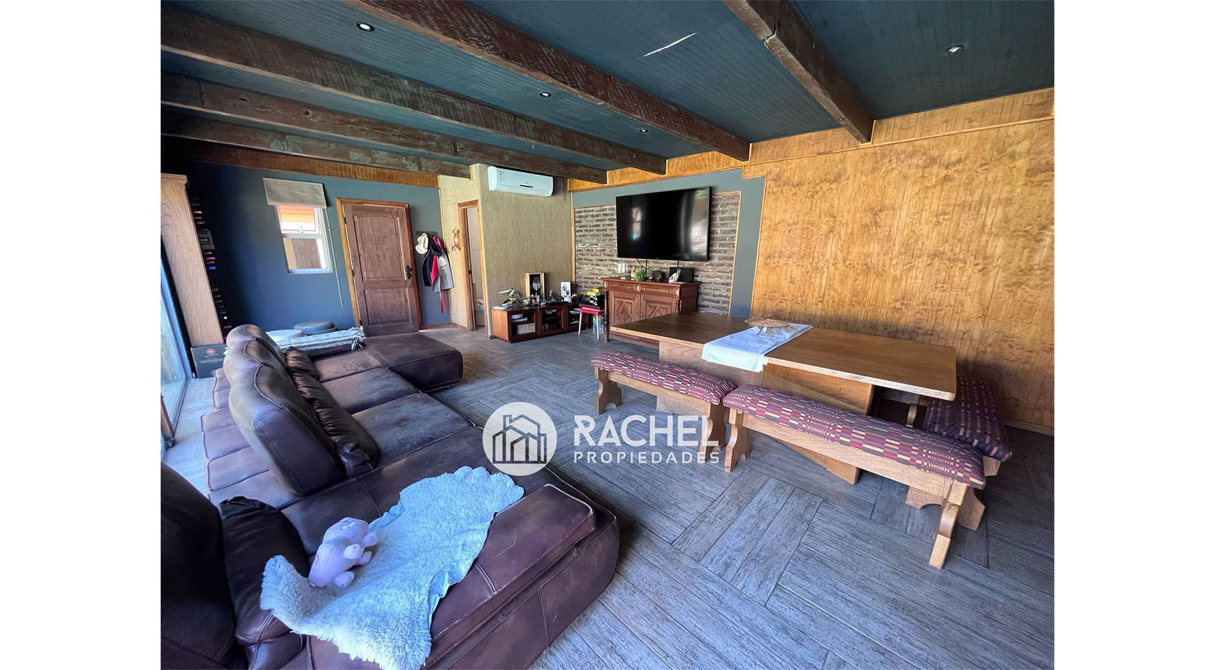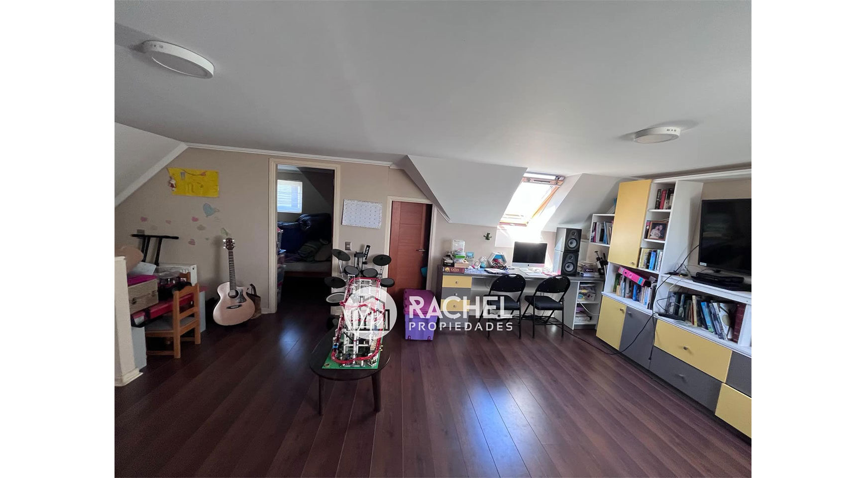 Quincho con cocina, completamente equipado, lindas terminaciones, vigas a la vista, baño y aire acondicionado. Piscina climatizada, jardín formado, riego automático. Bodega de muy buen tamaño.