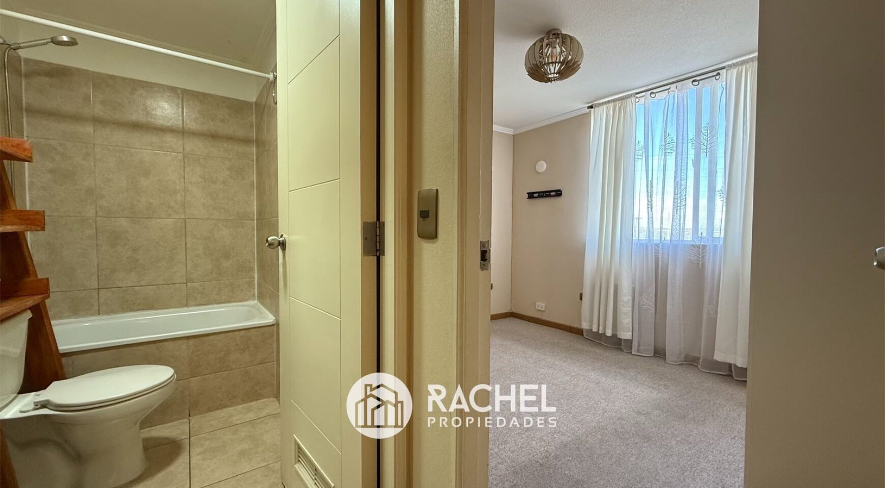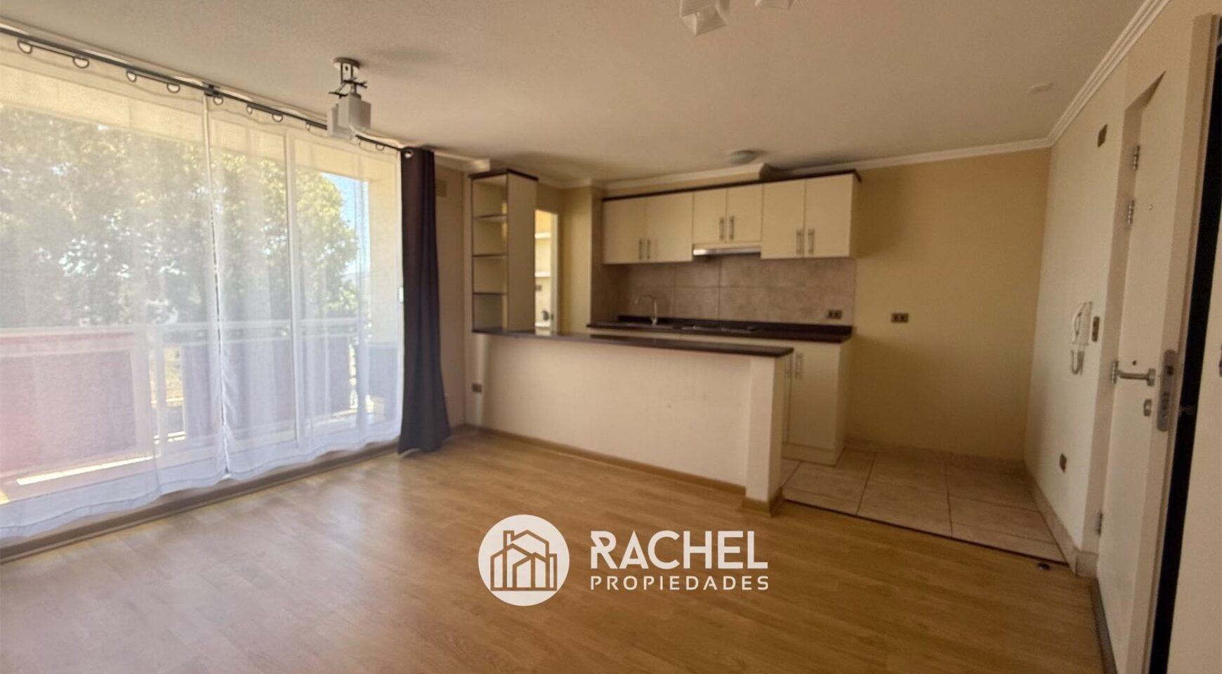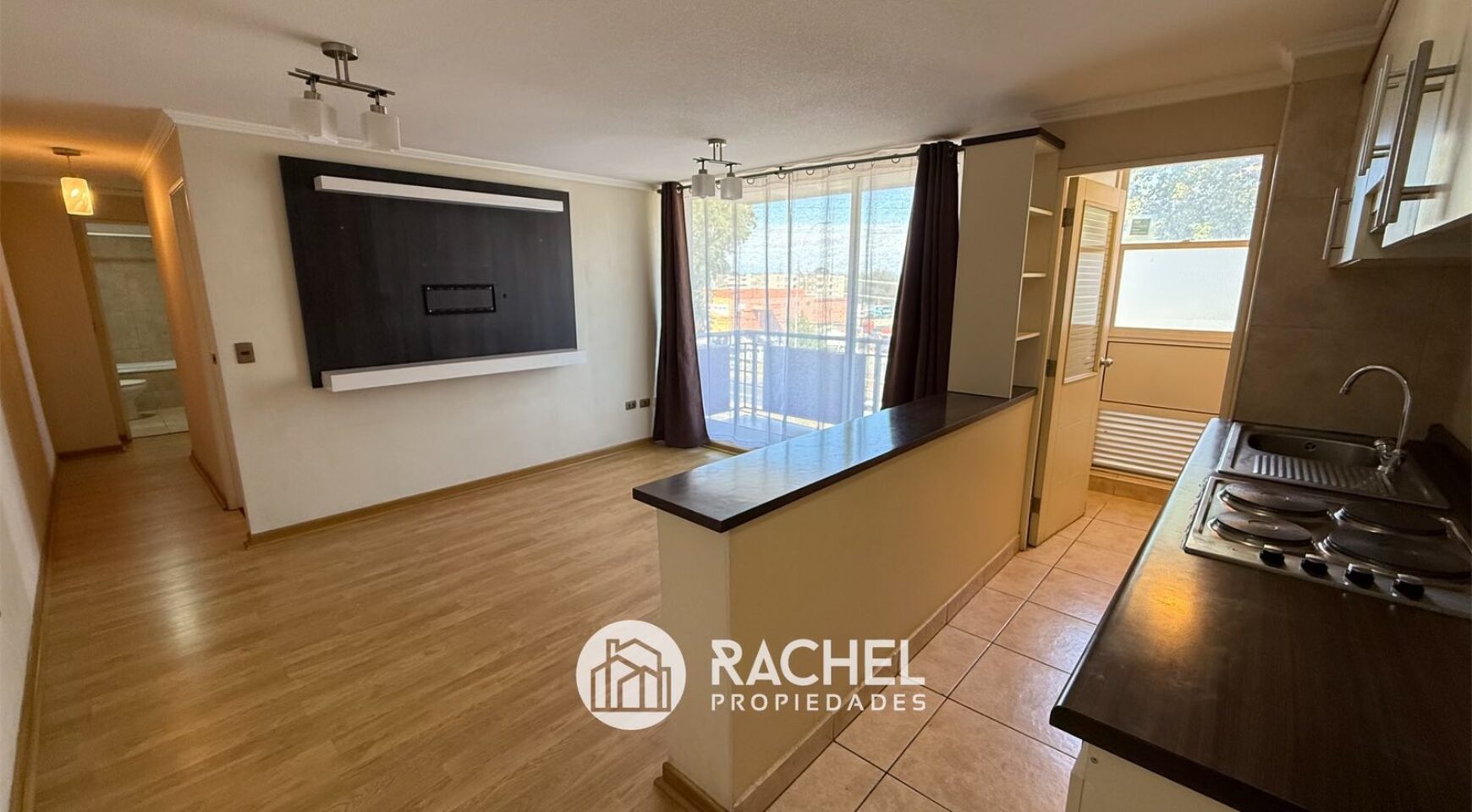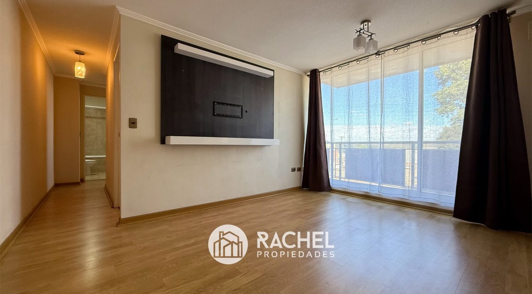 incluye Rack para televisor en el Living, cortinas en todas sus ventanas y lámparas