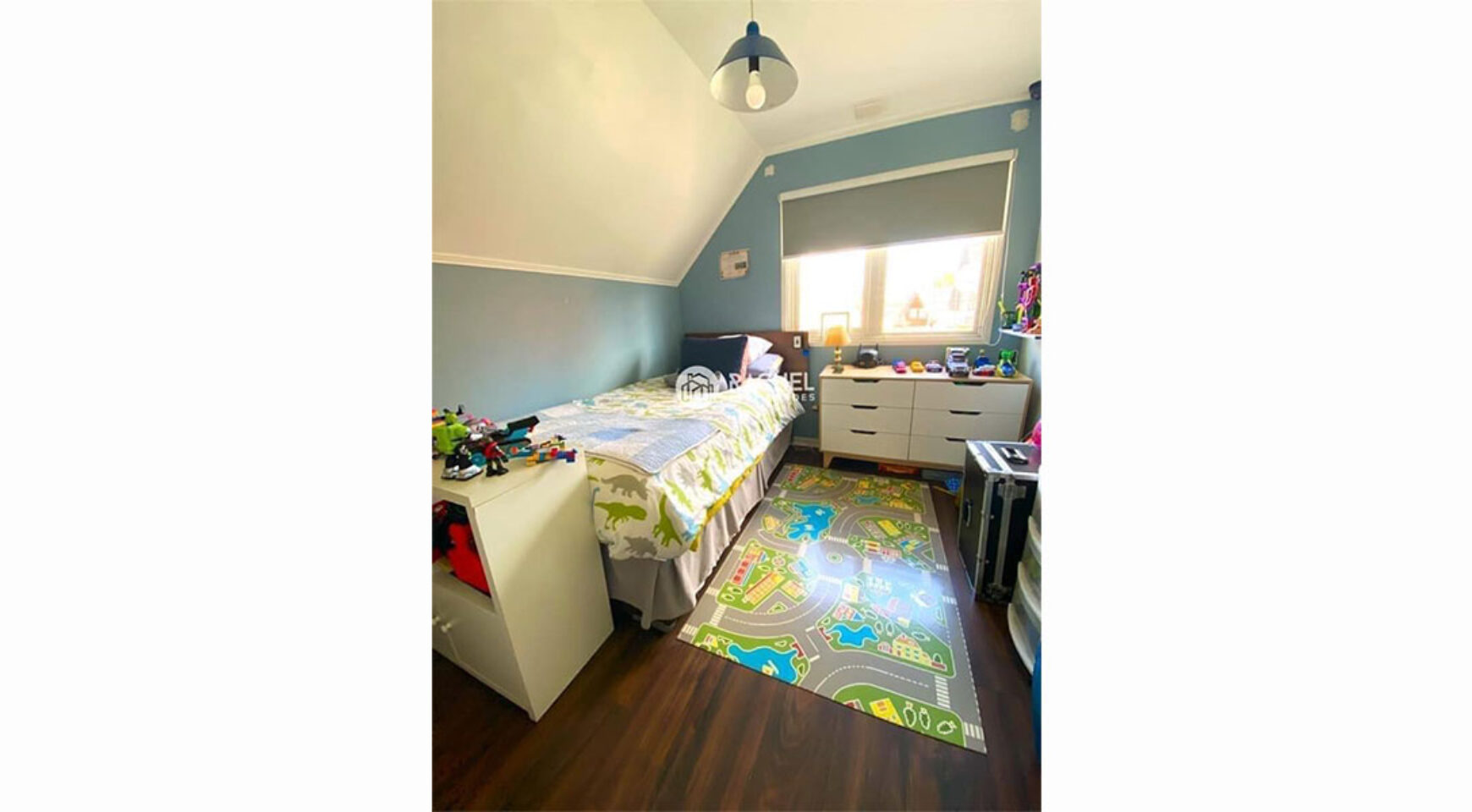 Hall distribución, dos dormitorios de muy buen tamaño, con Closet nuevos. Baño completo, con tina y ventana velux. Dormitorio principal en suite amplio, con walk in closet y muy soleado.