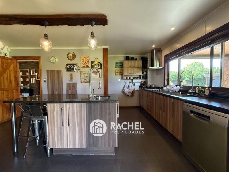 Cocina cerrada y equipada con isla y cocina a leña alcazar