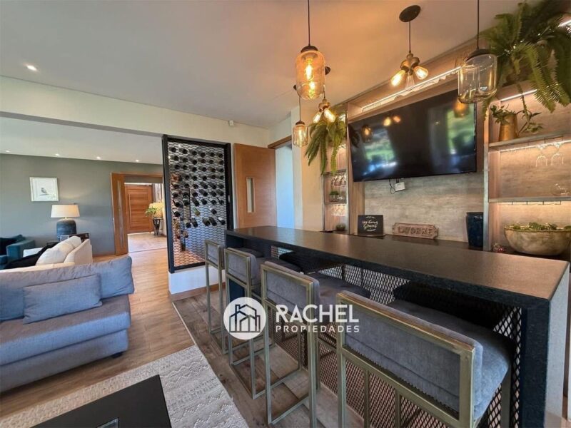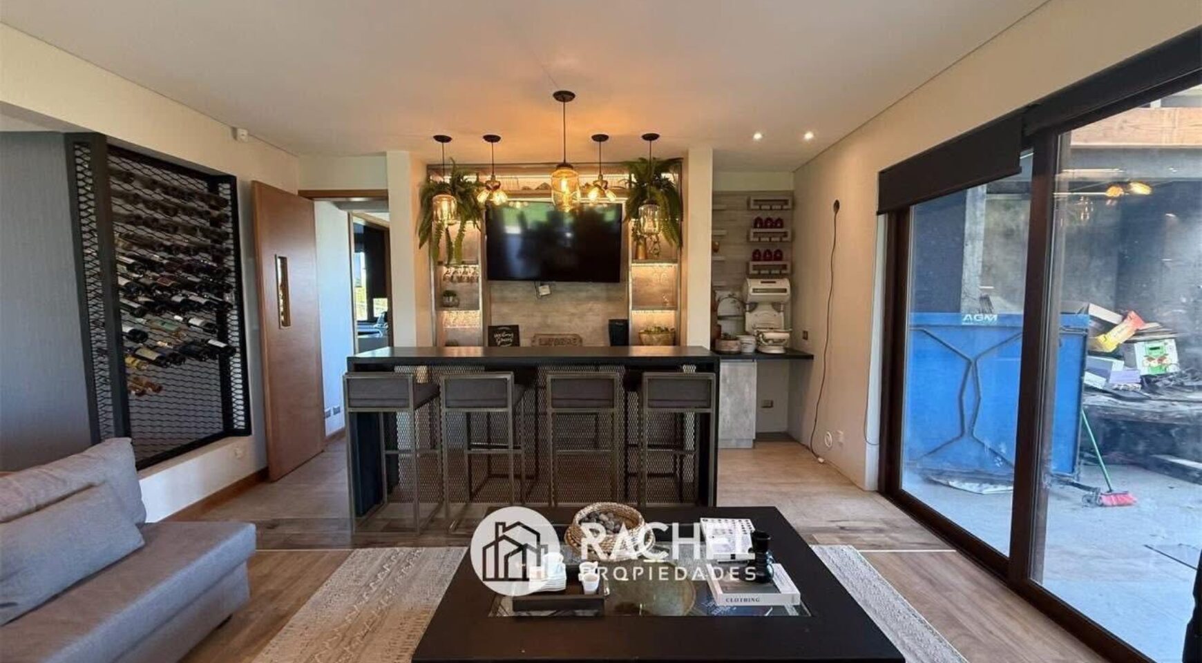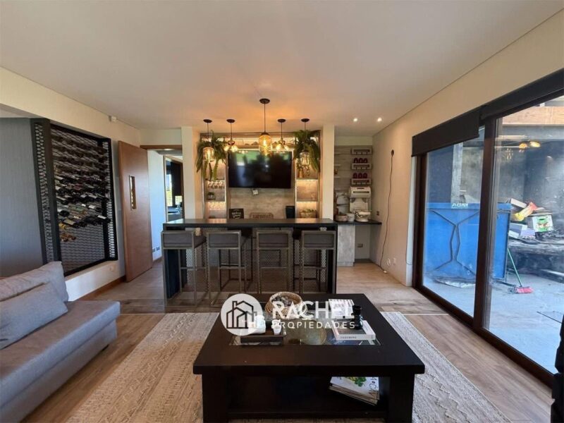 Imponente living comedor el cual incluye un sector tipo Bar, con salida a terraza.