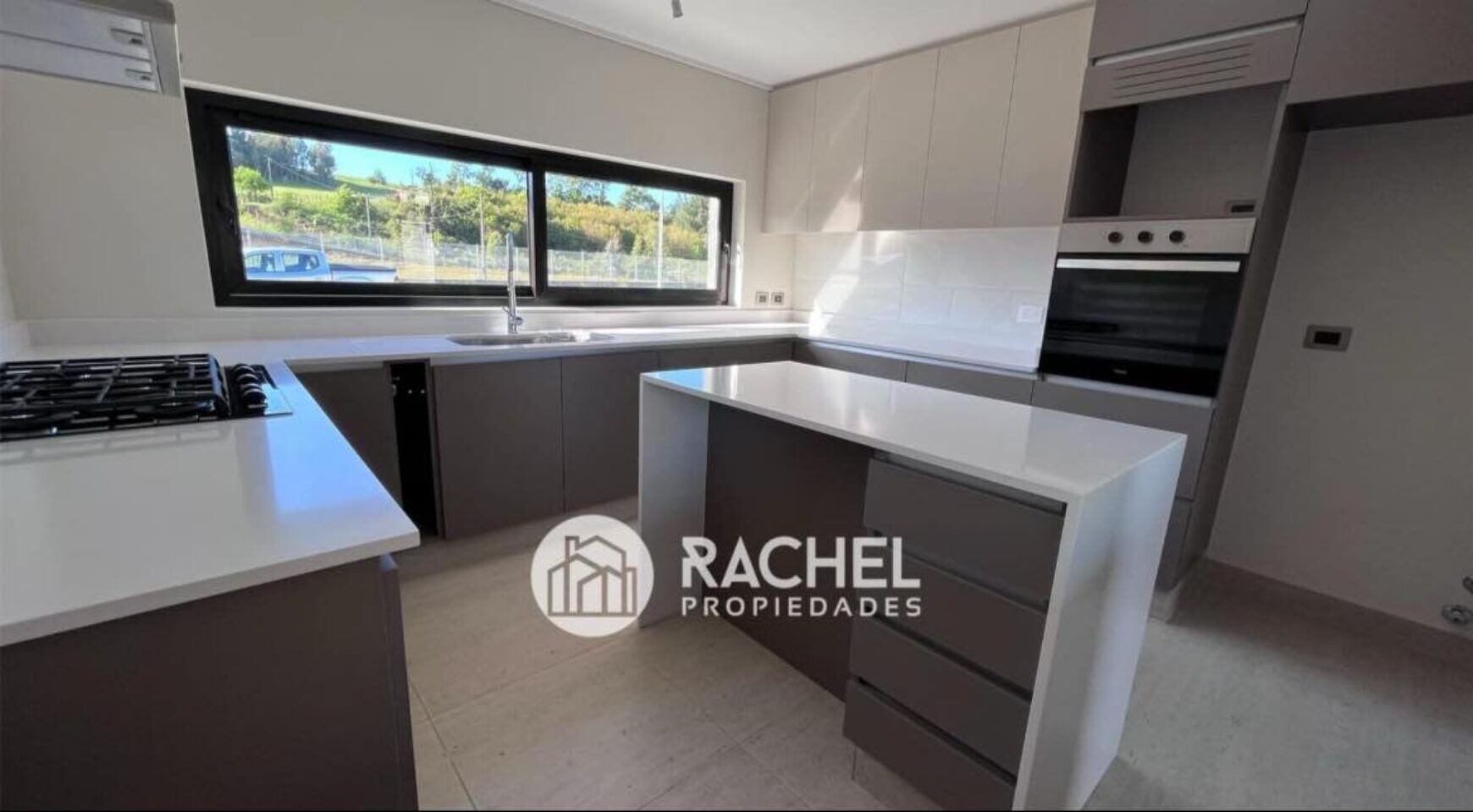 amplia cocina con isla comedor de diario, conexión para refrigerador doble, logia, horno , encimera y campana. Cubiertas de cuarzo silestone.